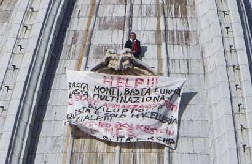 salito sul cupolone srotolando poi un manifesto contro Monti e le